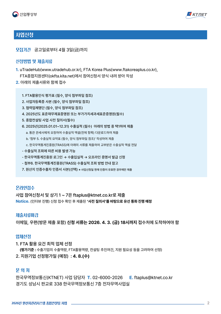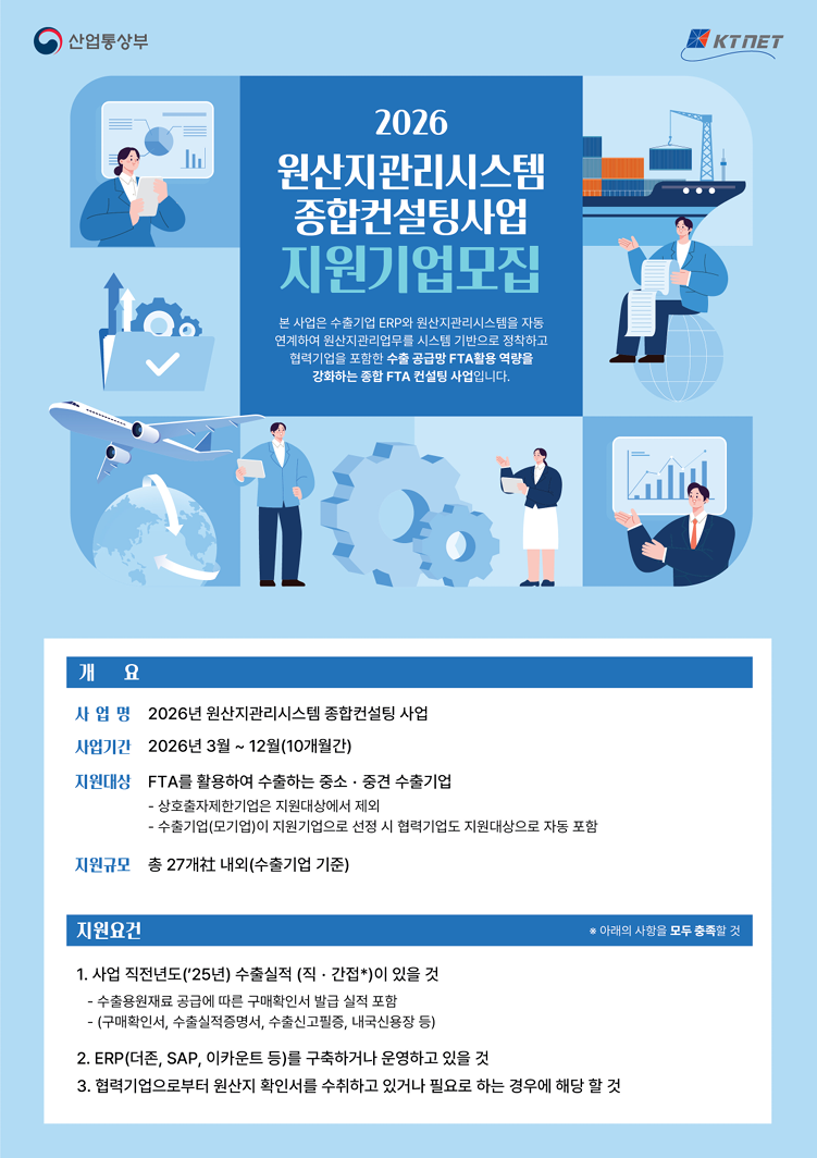 사업공고 [KTNET] 2026 원산지관리시스템 종합컨설팅사업 공고 안내 (~4.3)