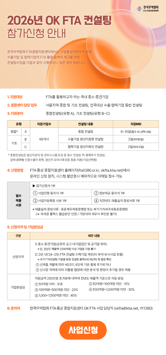2026년 OK FTA 컨설팅 참가기업 모집